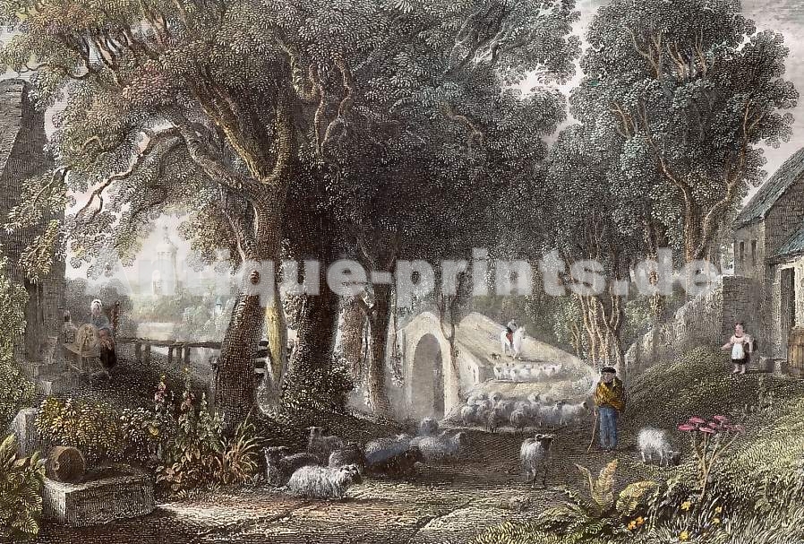 Irlande. Gravure sur acier, gravée par E. J. Roberts d´après W. H. Bartlett. 1859. Très bon état. Aquarellée à la main. 17,5x12,5cm. Montée sous passe-partout.