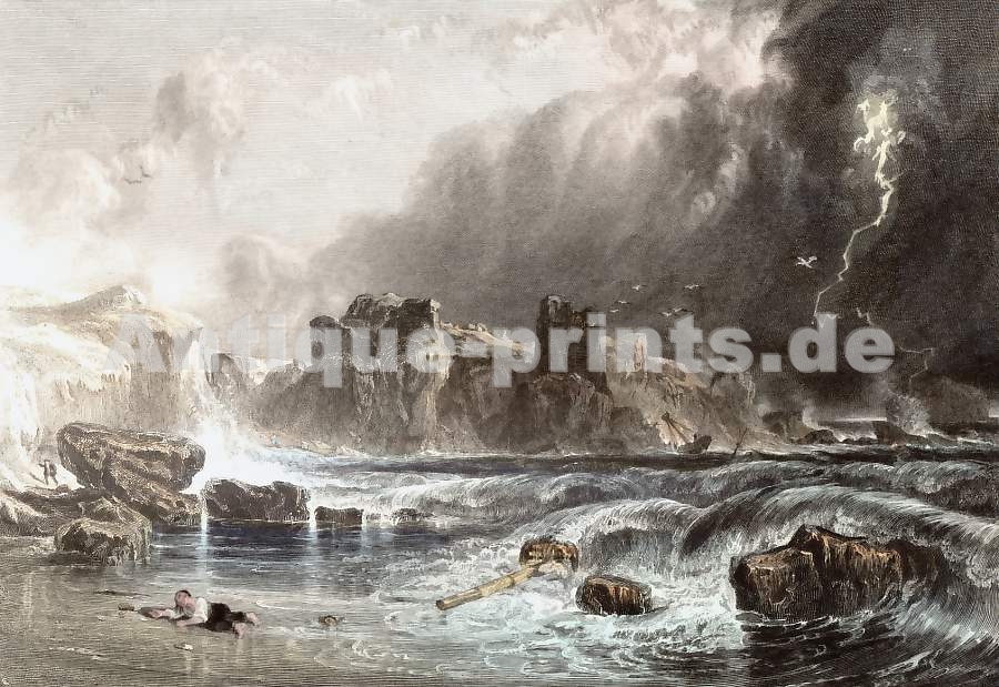 England. Original steel engraving drawn by T. Allom, engraved by S. Fisher. 1831. Very good condition. Modern hand-colouring. 15x9,5cm. Mounted.
