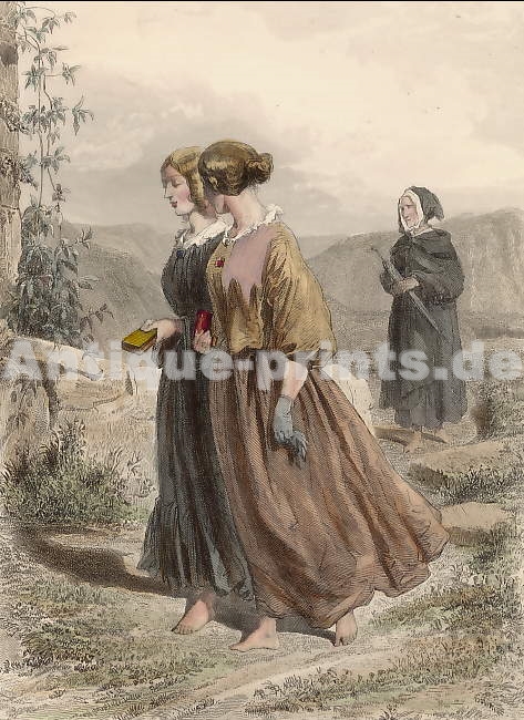 France. Original steel engraving drawn by Valério, engraved by E. Willmann. 1865. Good condition. Original hand colouring. 17x11cm. Matted. .