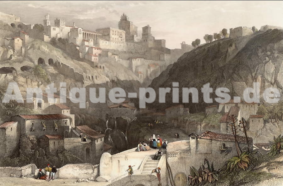 Sicile. Gravure sur acier, gravée par T. Heawood d´après A. Geyer. ca 1850. Très bon état. Aquarellée à la main. 20,5x14,5cm. Montée sous passe-partout.