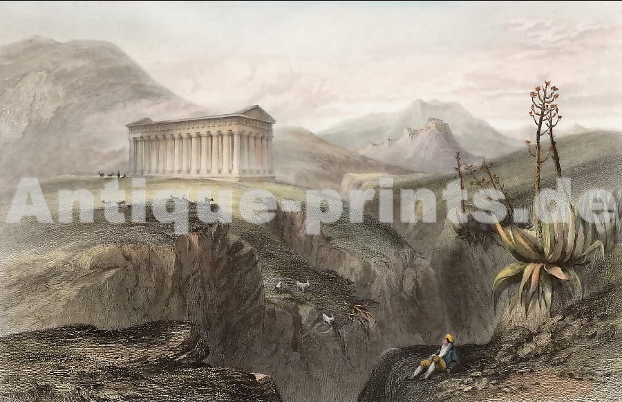 Sicile. Gravure sur acier, gravée par J. Sands d´après W. L. Leitch. 1841. Très bon état. Aquarellée à la main. 17,5x13cm. Montée sous passe-partout.