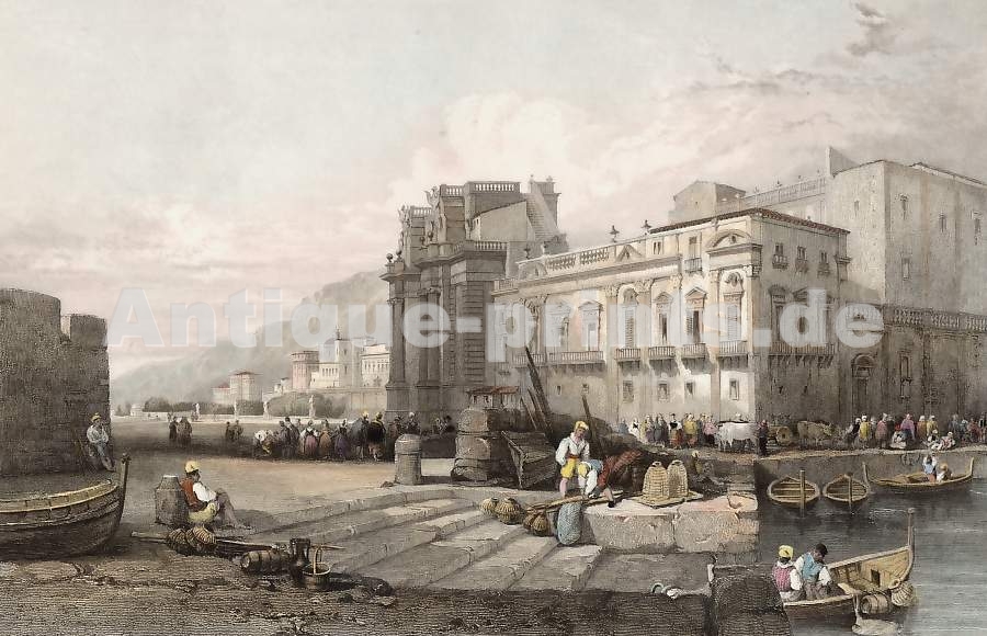 Sicily. Original steel engraving drawn by W. H. Bartlett, engraved by J. C. Bentley. 1855. Very good condition. Modern hand-colouring. 19x12cm. Matted.