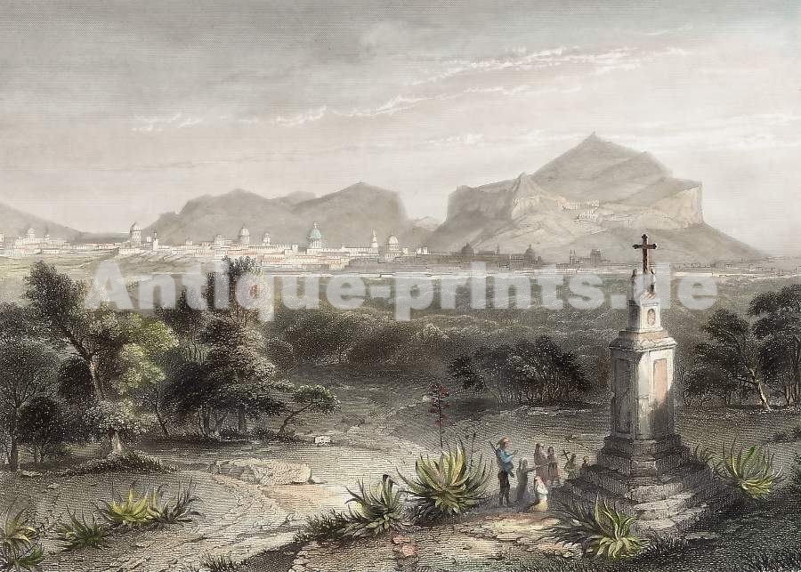 Sicile. Gravure sur acier, gravée par B. Bradshaw d´après H. Fenn. ca 1875. Très bon état. Aquarellée à la main. 23x15cm. Montée sous passe-partout.