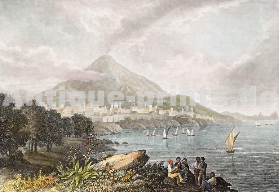 Sicile. Gravure sur cuivre (Strahlheim). 1836. Rousseur. Aquarellage ancien. 13x8,5cm. Montée sous passe-partout.
