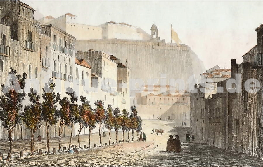 Espagne. Gravure sur acier, gravée par Whymper d´après H. Fenn. ca 1875. Très bon état. Texte au verso. Aquarellée à la main. 24x16cm. Montée sous passe-partout.