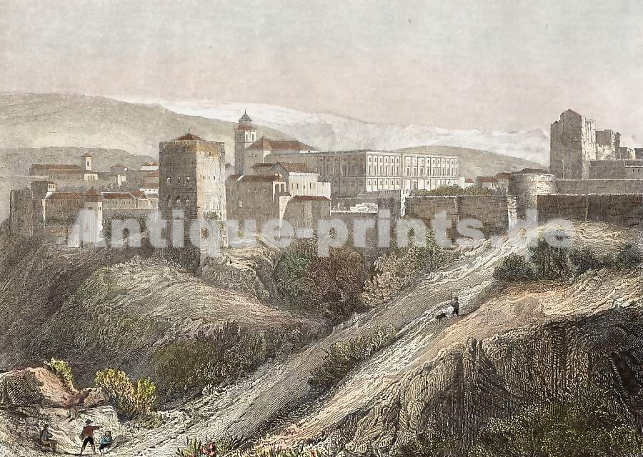 Espagne. Gravure sur acier par Lemaître. 1847. Très bon état. Aquarellée à la main. 13,5x9cm. Montée sous passe-partout.