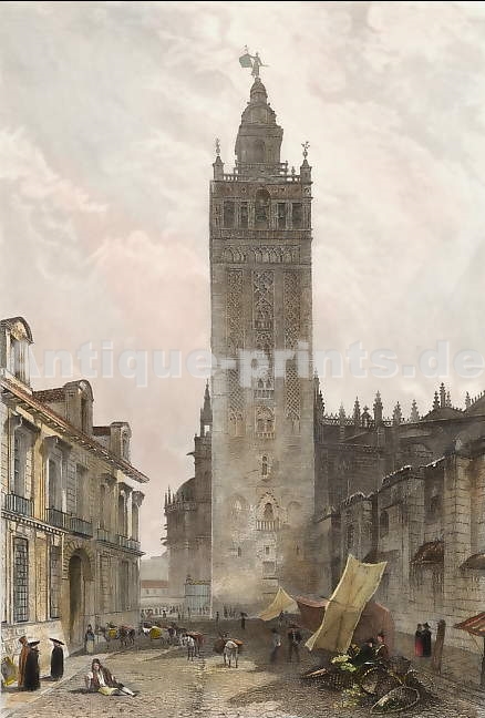 Spain. Original steel engraving drawn by J. Herbert, engraved by H. Cook 1847. Very good condition. Hand-coloured. 18,5x13,5cm. Matted.