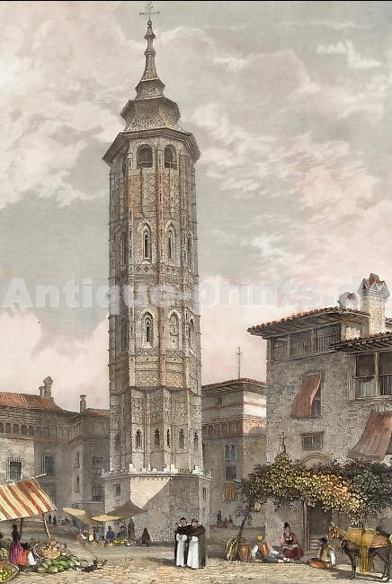 Espagne. Gravure sur acier, gravée par Le Petit. 1841. Bon état. Aquarellée à la main. 13,5x9,5cm. Montée sous passe-partout.