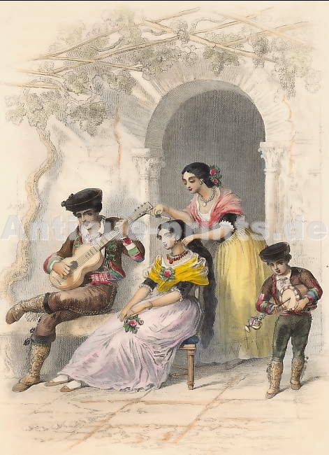 Espagne. Gravure sur acier. Bibliograph. Institut in Hidlburghausen. ca 1850. Très bon état. Aquarellée à la main. 15x10cm. Montée sous passe-partout.