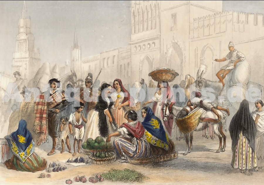 Spain. Original steel engraving drawn by A. Rouargue, engraved by E. Rouargue. 1859. Very good condition. Hand-coloured. 16,5x12cm. Matted.