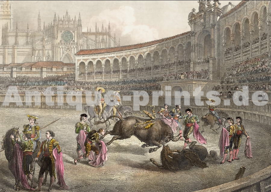 Espagne. Gravure sur bois, gravée par J. W. Parker d´après W. Heath. 1835. Très bon état. Texte au verso. Aquarellée à la main. 13x9cm. Montée sous passe-partout.