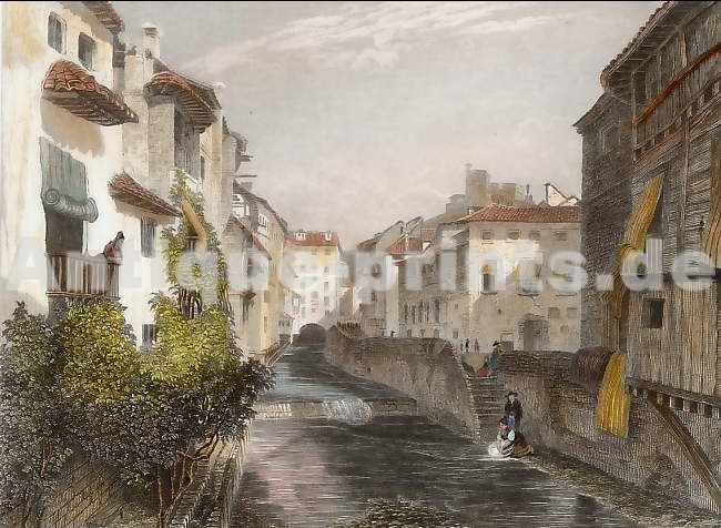 Pays-Bas. Gravure sur acier dessinée et gravée par A. et E. Rouargue. 1857. Bon état. Aquarellée à la main. 16,5x12cm. Montée sous passe-partout.