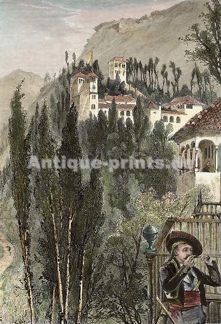Spain. Original steel engraving by Lemaître. 1847. Very good condition. Hand-coloured. 14,5x9,5cm. Matted.