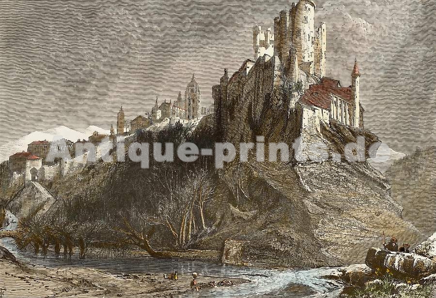 Angleterre. Gravure sur acier, gravée par J. Cochran. 1853. Très bon état. Bordure décorative. Aquarellée à la main. 12x9,5cm. Montée sous passe-partout.