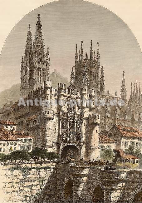 Luxembourg. Gravure sur bois, gravée par C. Laplante d´après T. Taylor. 1879. Rousseurs dans les marges. Aquarellée à la main. 18,5x13cm. Montée sous passe-partout.