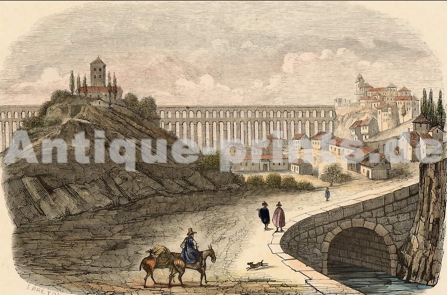 Espagne. Gravure sur bois. 1846. Très bon état. Aquarellée à la main. 15,5x10cm. Montée sous passe-partout.