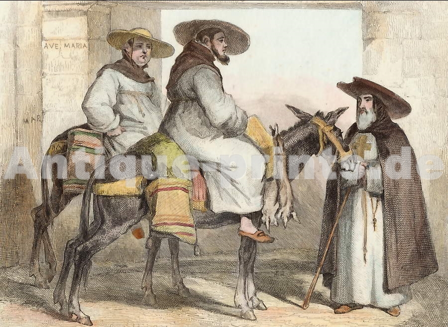 Espagne. Gravure sur acier, gravée par Lemaître. 1844. Très bon état. Aquarellée à la main. 14x10cm. Montée sous passe-partout.