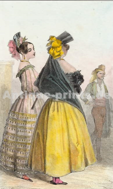 Espagne. Gravure sur bois, gravée par Whymper d´après R. P. Leitch. ca 1875. Très bon état. Texte au verso. Aquarellée à la main. 23x15,5cm. Montée sous passe-partout.