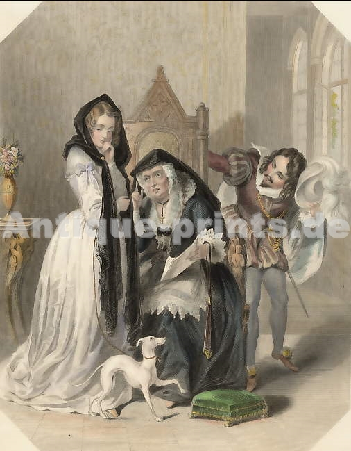 England. Original steel engraving, engraved by E. Finden after W. H. Watts. 1837. Very good condition. Hand-coloured. 11x10cm. Matted.
