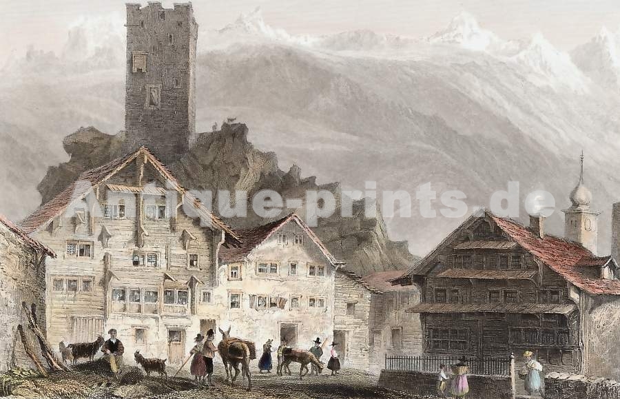 Switzerland. Original steel engraving drawn by Girard, engraved by Outhwaite. 1859. Good condition. Hand-coloured. 17x11,5cm. Ready to frame. Scan can be provided on request.