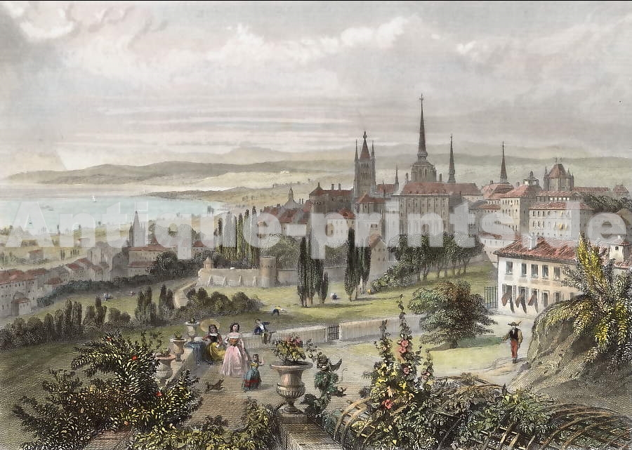 England. Stahlstich von R. Sands nach T. Allom. 1834. Guter Zustand. Handkoloriert. 15,5x9,5cm. Mit Passepartout.