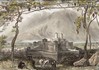 Herculaneum. Kupferstich von C. Oratij nach G. Morghen. 1765. Sehr guter Zustand. Text auf der Rückseite. Handkoloriert. 22x5cm. Mit Passepartout.