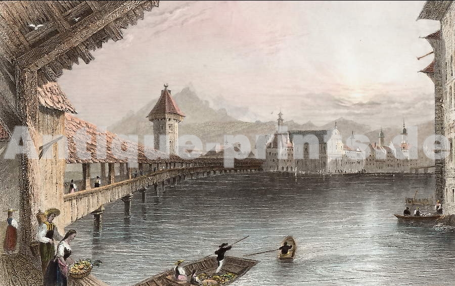 Schweiz. Stahlstich gestochen von E. Rouargue. 1838. Sehr guter Zustand. Handkoloriert. 14x9cm. Mit Passepartout.