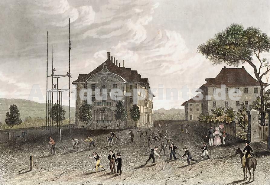 England. Stahlstich gestochen von W. T. Mote. 1853. Sehr guter Zustand. In gestochener Rankenbordüre. Handkoloriert. 12x9,5cm. Mit Passepartout.