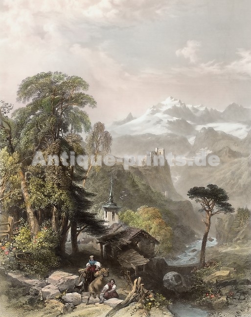 Italien. Stahlstich von C. Frommel und H. Winkles nach C. Frommel. 1840. Guter Zustand. Handkoloriert. 15,5x10cm. Mit Passepartout.
