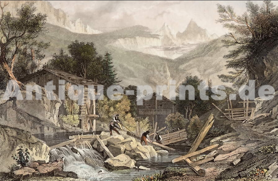 Italien. Stahlstich von J. T. Willmore nach S. Prout. 1829. Sehr guter Zustand. Handkoloriert. 14,5x9,5cm. Mit Passepartout.