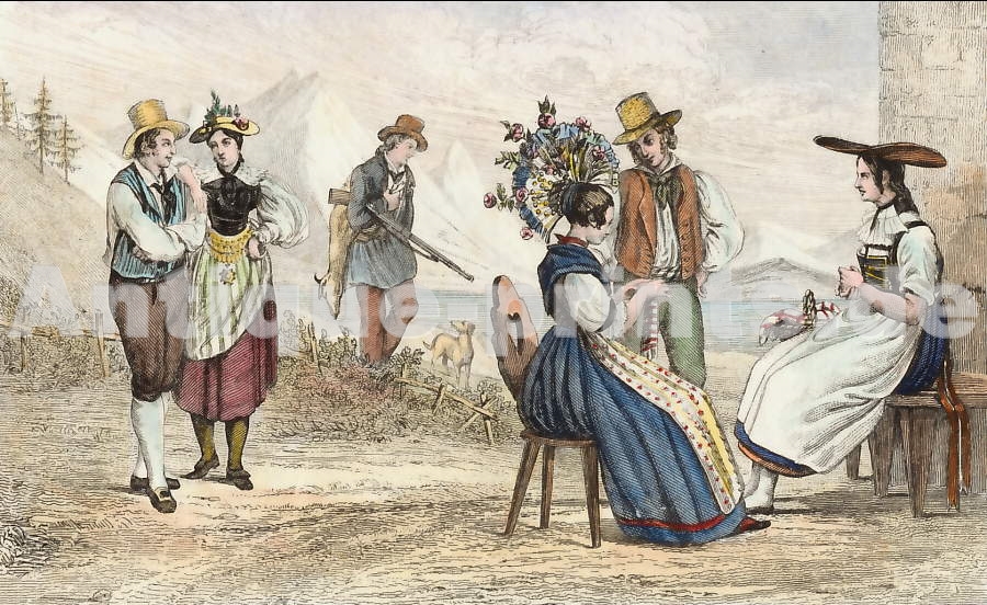 Frankreich. Stahlstich von S. Lacey nach W. Brockedon. 1837. Sehr guter Zustand. Handkoloriert. 17,5x12cm. Mit Passepartout.