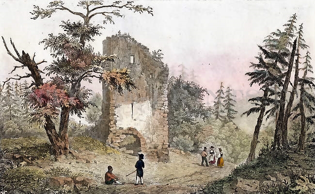 France. Original steel engraving drawn by J. D. Harding, engraved by J. H. Kernot. 1834. Very good condition. Hand-coloured. 14x10cm. Matted.