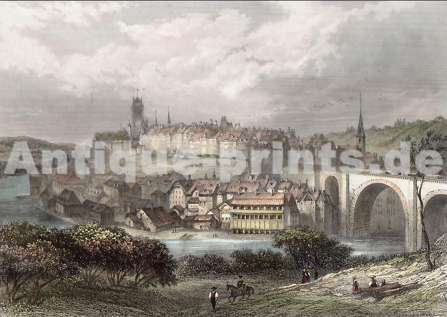 Ireland. Original steel engraving, engraved by H. Griffiths after W. H. Bartlett. 1859. Very good condition. Hand-coloured. 18x12,5cm. Matted.