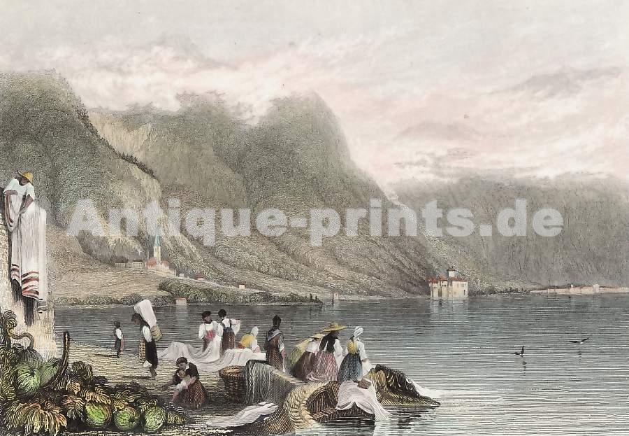 Belgique. Gravure sur acier, gravée par J. Shury. ca 1835. Petite tache dans la marge inférieure. Aquarellée à la main. 14,5x10,5cm. Montée sous passe-partout.