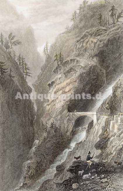 Grèce. Gravure sur acier, gravée par E. Finden d´après C. Stanfield. 1832. Très bon état. Aquarellée à la main. 14x8,5cm. Montée sous passe-partout.