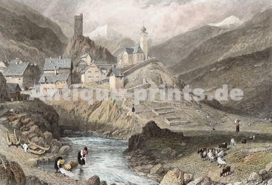 Ukraine. Gravure sur bois. 1876. Très bon état. Imprimée au verso. Aquarellée à la main. 23x14cm. Montée,sous passe-partout.