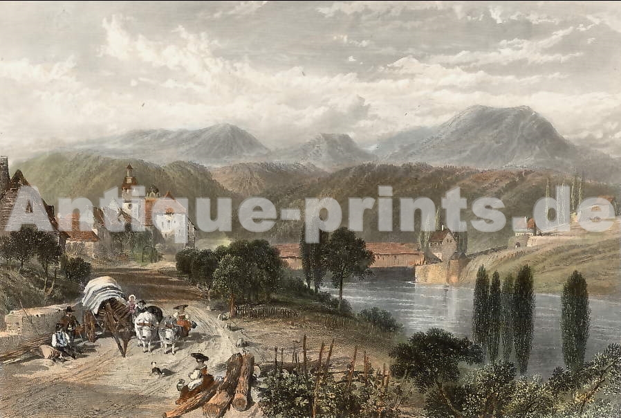 France. Gravure sur acier, gravée par Ransonnette. 1838. Très bon état. Aquarellée à la main. 9x6,5cm. Montée sous passe-partout.