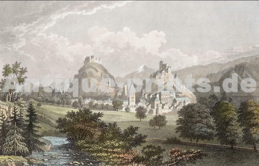 Germany. Original steel engraving drawn by L. Rohbock, engraved by L. Thümling. 1858. Good condition. Hand-coloured. 16x11cm. Matted.
