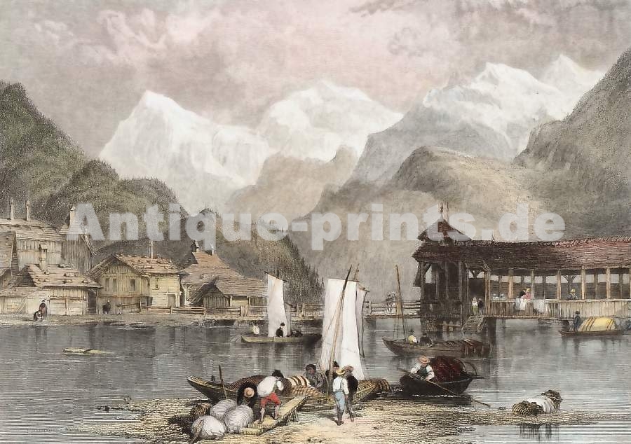 India. Original steel engraving, engraved by J. W. Archer after T. Creswick. 1839. Very good condition. Hand-coloured. 14x10cm. Matted.