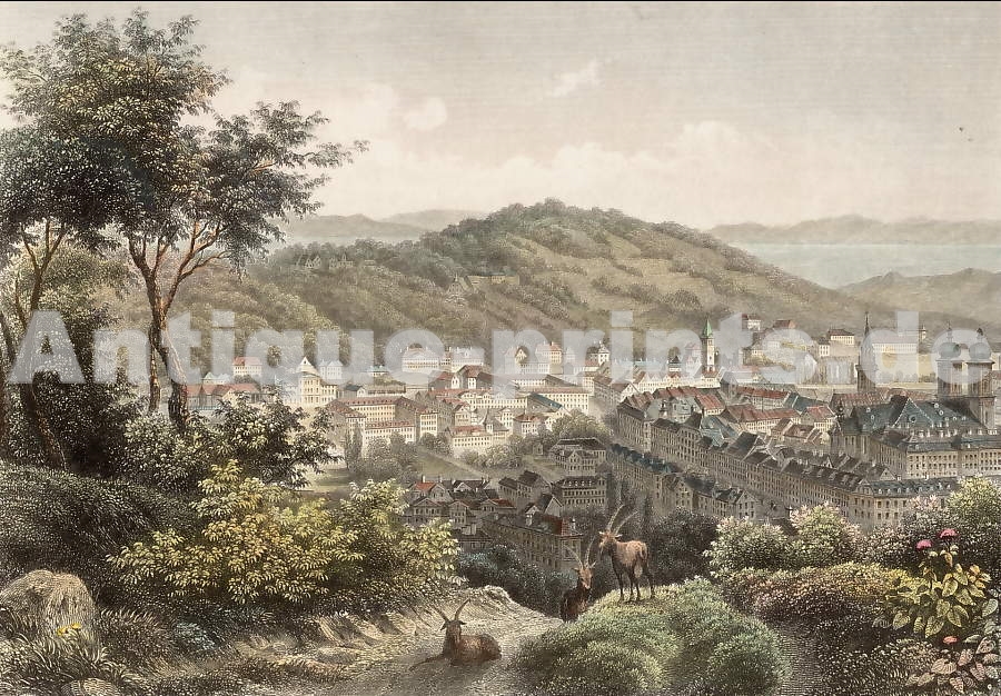 Lebanon. Original steel engraving by Lemaître. 1848. Very good condition. Hand-coloured. 14x9cm. Matted.