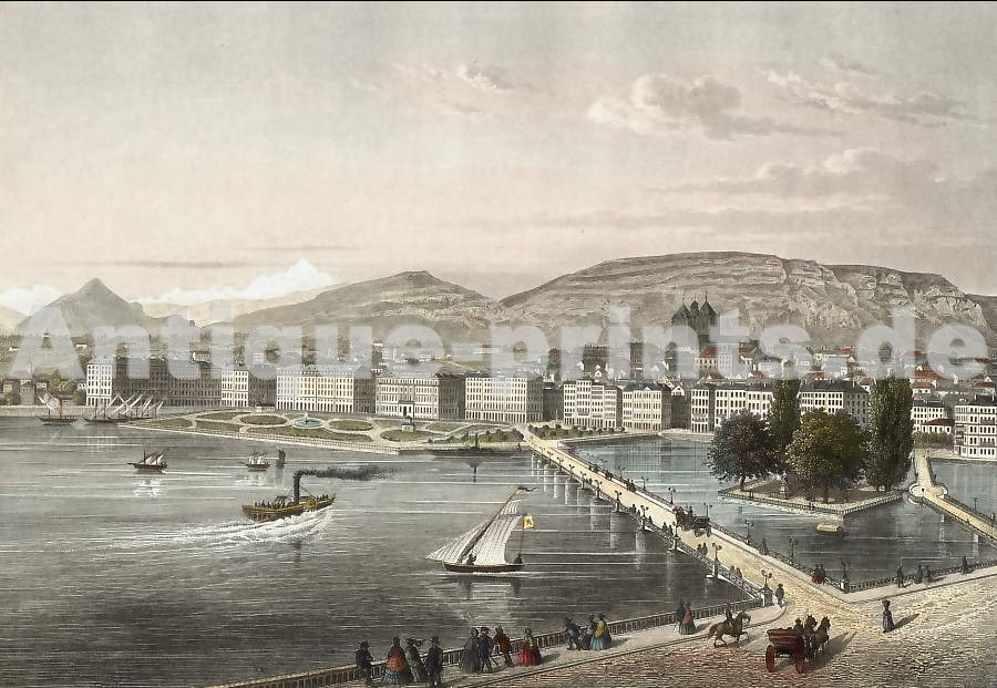 Holy Land. Original steel engraving, engraved by S. Fisher after T. Allom. 1838. Good condition. Hand-coloured. 19x12,5cm. Matted.