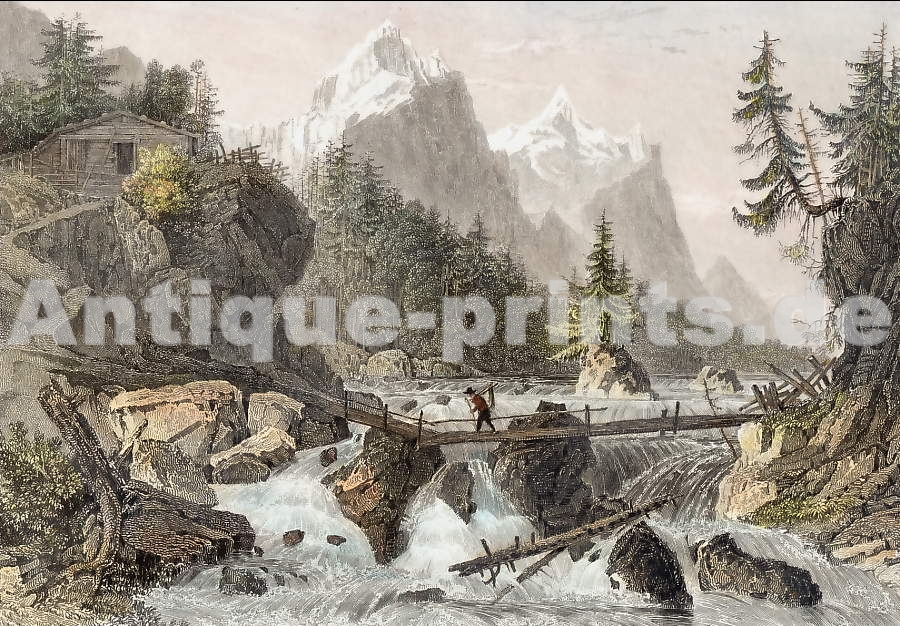 Italy. Original wood engraving drawn by Niederhausern-Koechlin. 1878. Very good condition. Hand-coloured. 19x13cm. Matted.