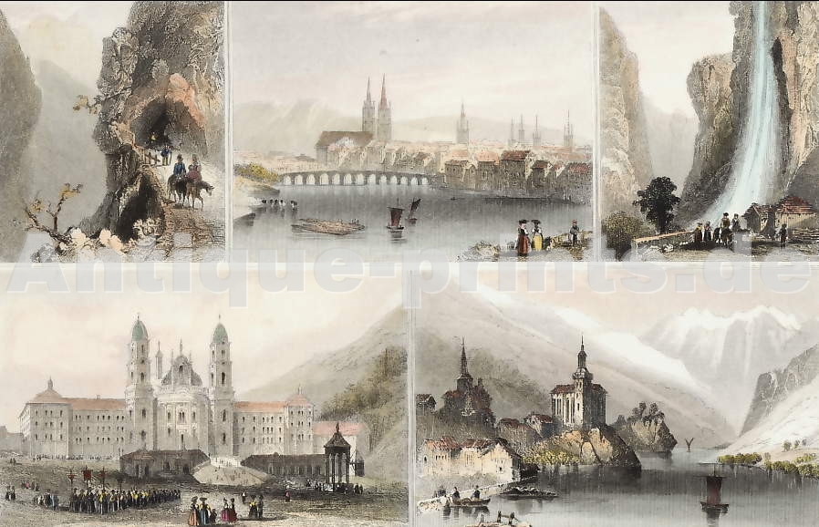 Netherlands. Original steel engraving, engraved by R. Brandard after C. Stanfield. 1837. Very good condition. Hand-coloured. 13,5x9,5cm. Matted.