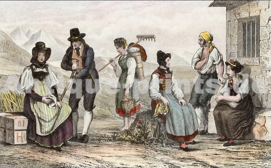 Varia. Original steel engraving engraved by A. H. Payne after Laure. 1851. Good condition. Hand-coloured. 15,5x11,5cm. Matted.
