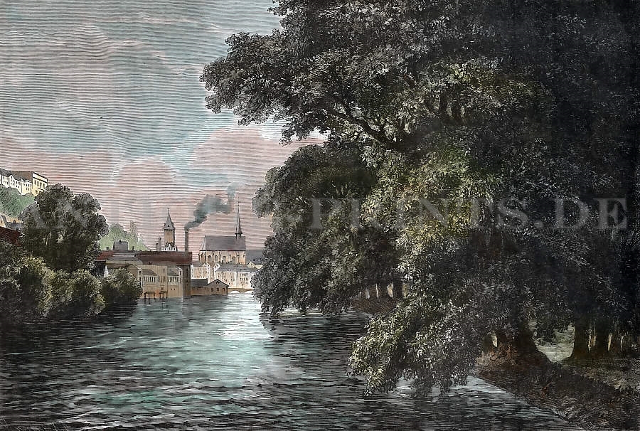 Switzerland. Original wood engraving, engraved by C. Huber after X. A. Knesing. 1879. Very good condition. Old hand-colouring. 25x17cm. Matted.