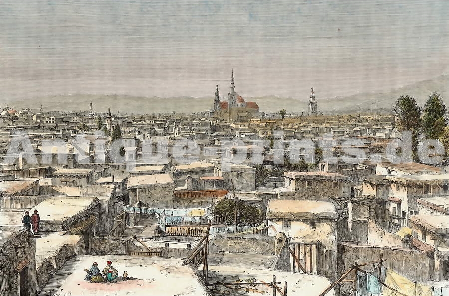 Uzbekistan. Original wood engraving, engraved by A. Kohl after C. Barclay. 1881. Good condition. Hand-coloured. 19x13cm. Matted.