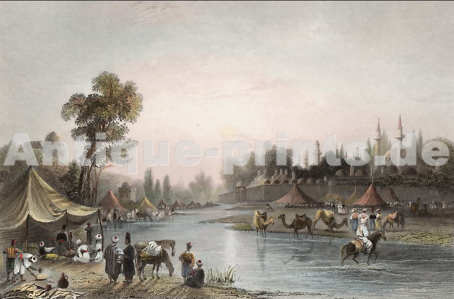 Syrie. Gravure sur acier, gravée par J. Jorden d´après W. H. Bartlett. 1836. Bon état. Aquarellée à la main. 19x12,5cm. Montée sous passe-partout.