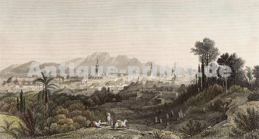 Jordanie. Gravure sur bois, dessinée par E. Breton. 1846. Très bon état. Aquarellée à la main. 15x10cm. Montée sous passe-partout.