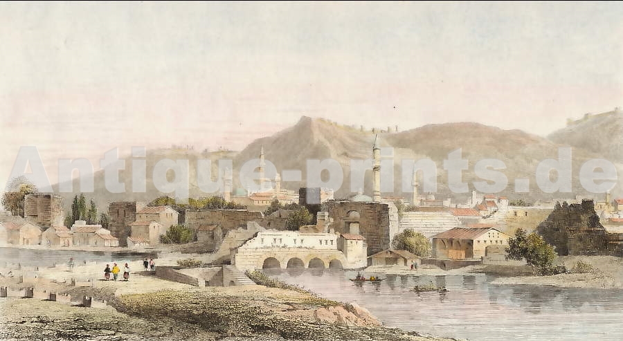 Syrie. Gravure sur acier dessinée et gravée par Auber. 1859. Très bon état. Aquarellée à la main. 14,5x9,5cm. Montée sous passe-partout.
