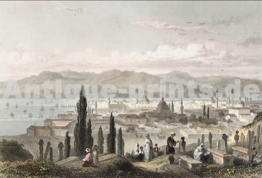 Turkey. Original steel engraving drawn by T. Allom, engraved by J. Tingle. ca 1840. Good condition. Hand-coloured. 17x13cm. Matted.